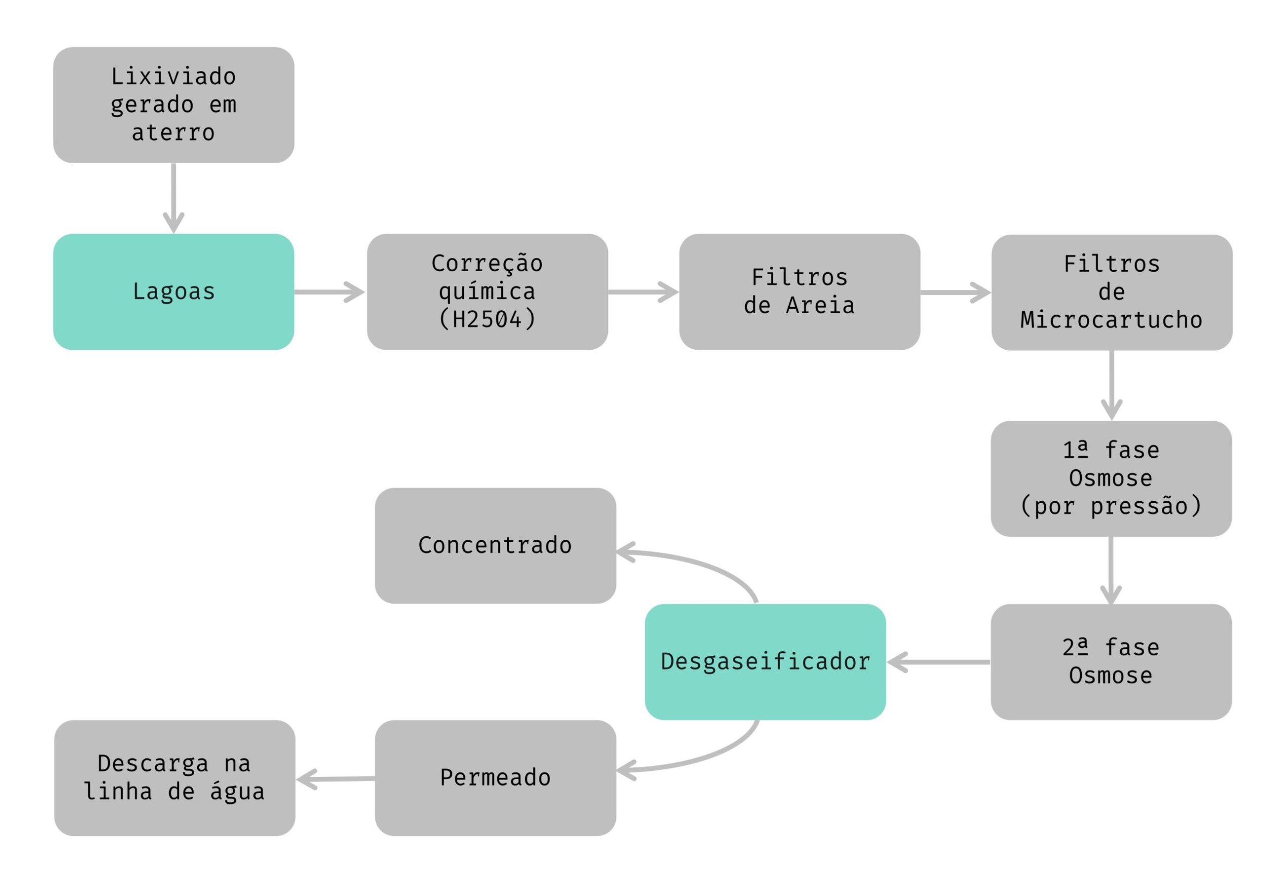 • Cinco lagoas de armazenamento, onde os lixiviados são inicialmente acumulados;